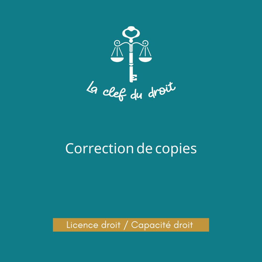 Il s'agit d'une correction personnalisée d'une copie de votre choix. Il peut s'agir d'une dissertation, d'une fiche d'arrêt, d'un commentaire d'arrêt, d'article, de texte, d'un cas pratique. Nous corrigeons tout type d'exercice juridique.